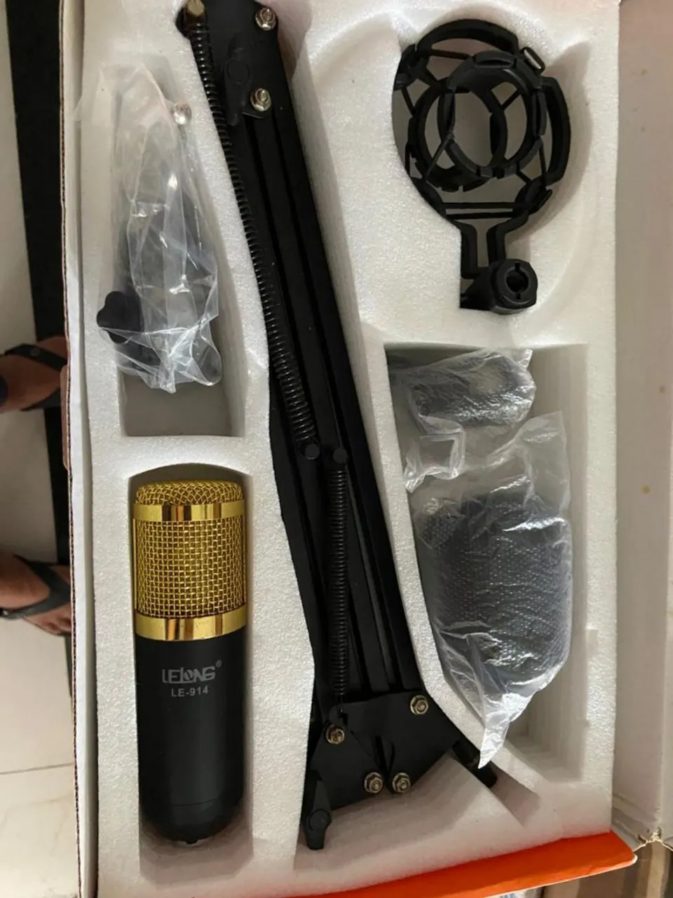 Microfone de mesa Lelong. Na caixa Novo, nunca foi usado. Está sem Nota, ganhei de presente. Motivo da venda: Tenho 2.