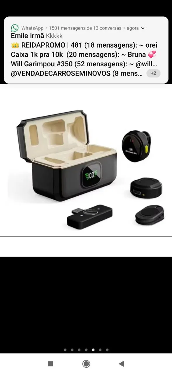 Microfone sem fio com carregador e display digital. Ideal para entrevistas, gravações e transmissões. Ótima qualidade de áudio e fácil de usar.