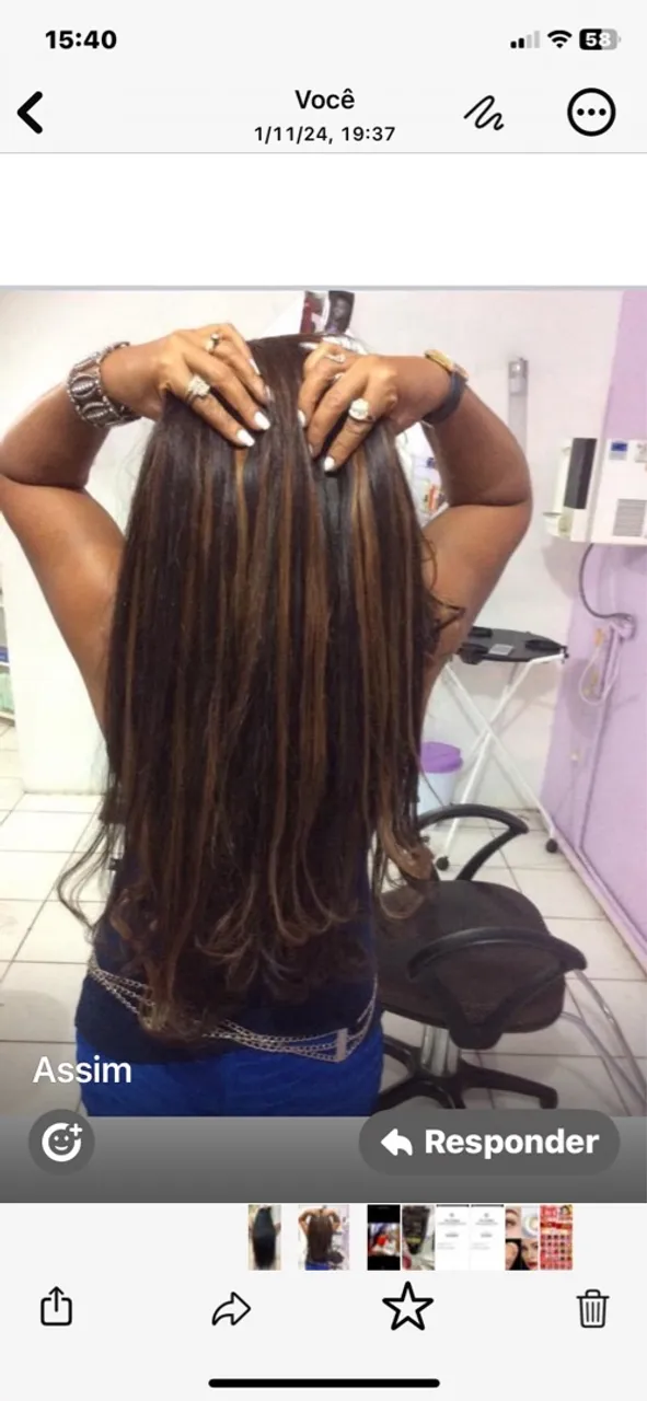 Cabelo com luzes, brilho e movimento, realçando a beleza natural. Transforme seu visual! Apartir Obs. Trata-se de uma maneira de colocação.