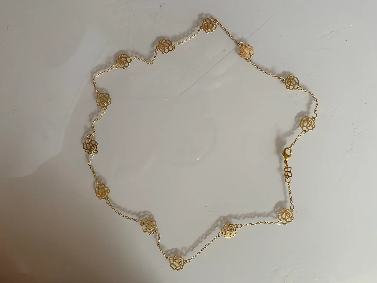 Lindo colar dourado com detalhes de flores, perfeito para adicionar um toque de elegância e sofisticação ao seu visual. Ideal para diversas ocasiões!