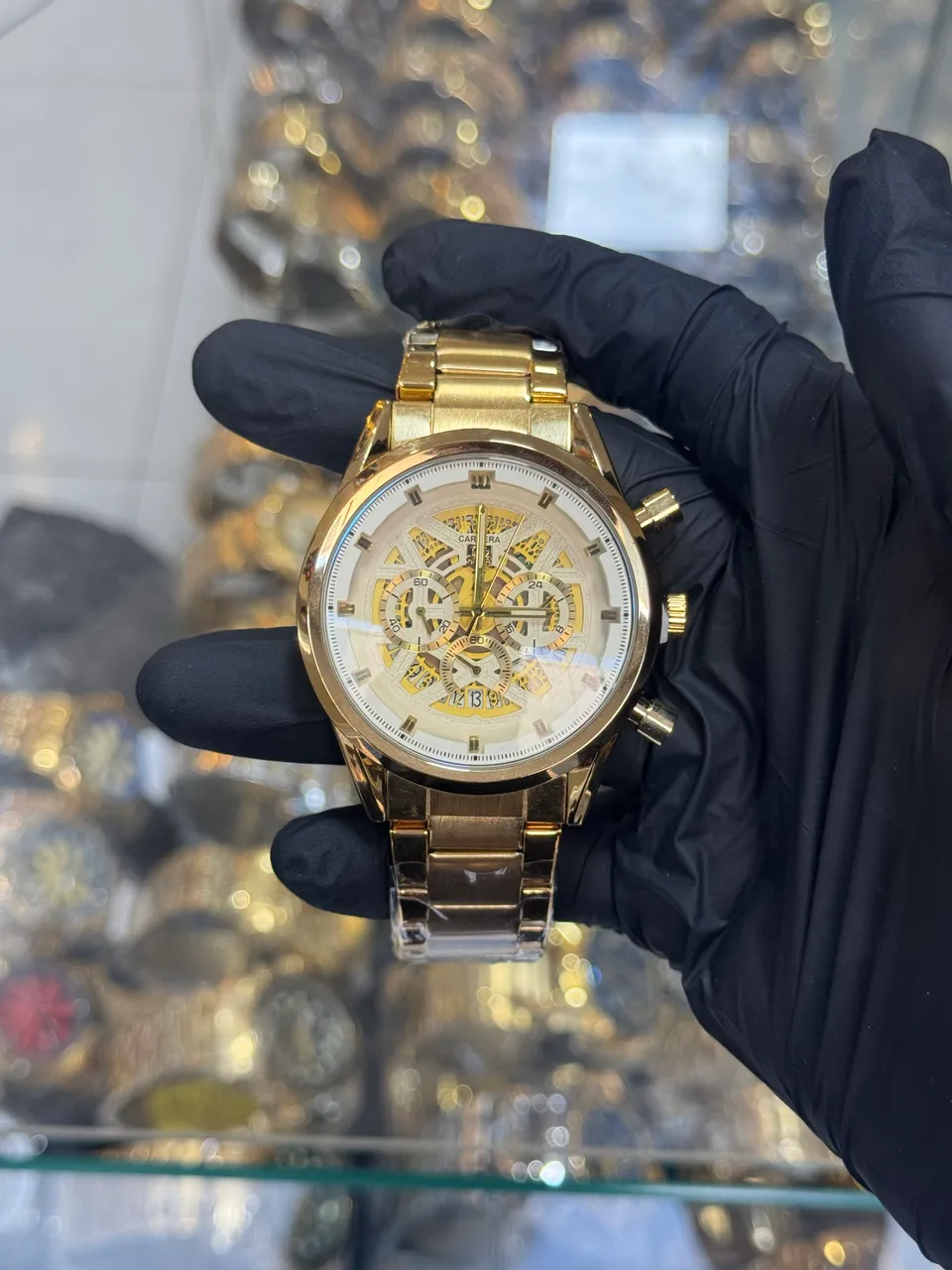 Relógio dourado com design elegante e funcionalidade impecável. Perfeito para quem busca estilo e precisão no dia a dia. Adquira já o seu! Whatsap