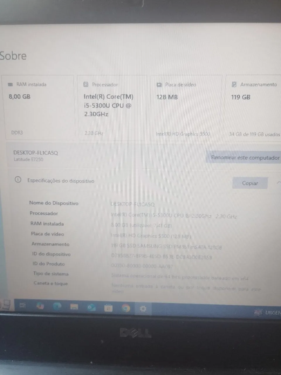 Core i5 2.3 ghz 8 GB de ram 128 GB de memória OBS: SO PEGA NO CARREGADOR , PRECISA TROCAR BATERIA