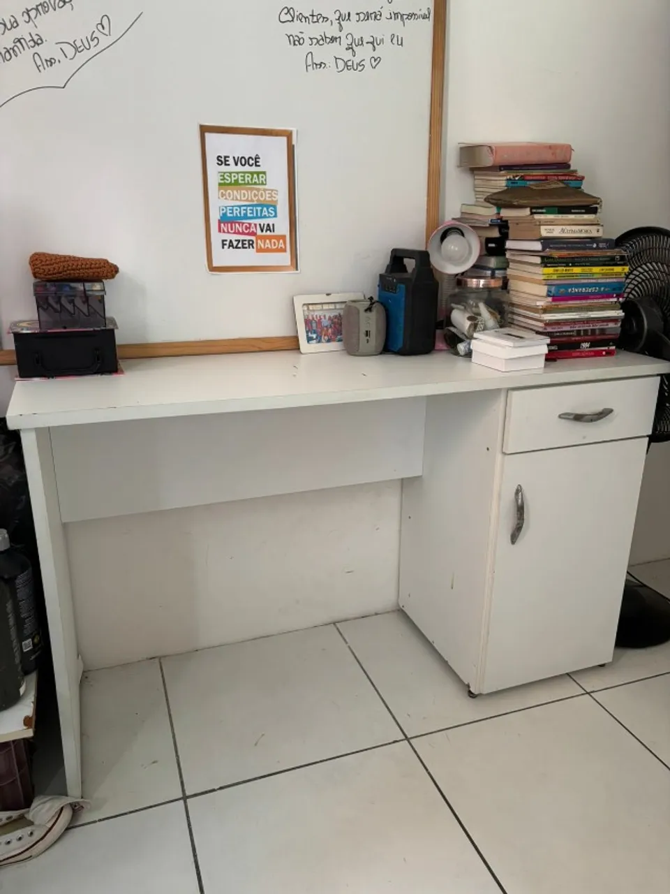 Escrivaninha branca, ideal para estudos ou trabalho. Design simples e funcional, perfeita para otimizar seu espaço com estilo e praticidade.