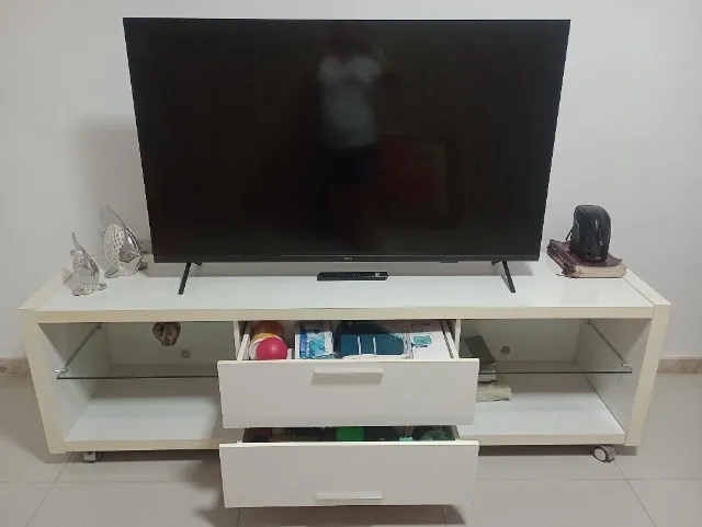 Rack de laqueado branco medida 1,90 de comprimento com rodinhas de silicone, duas gavetas. valor 800,00 Contato 71 ... ver número