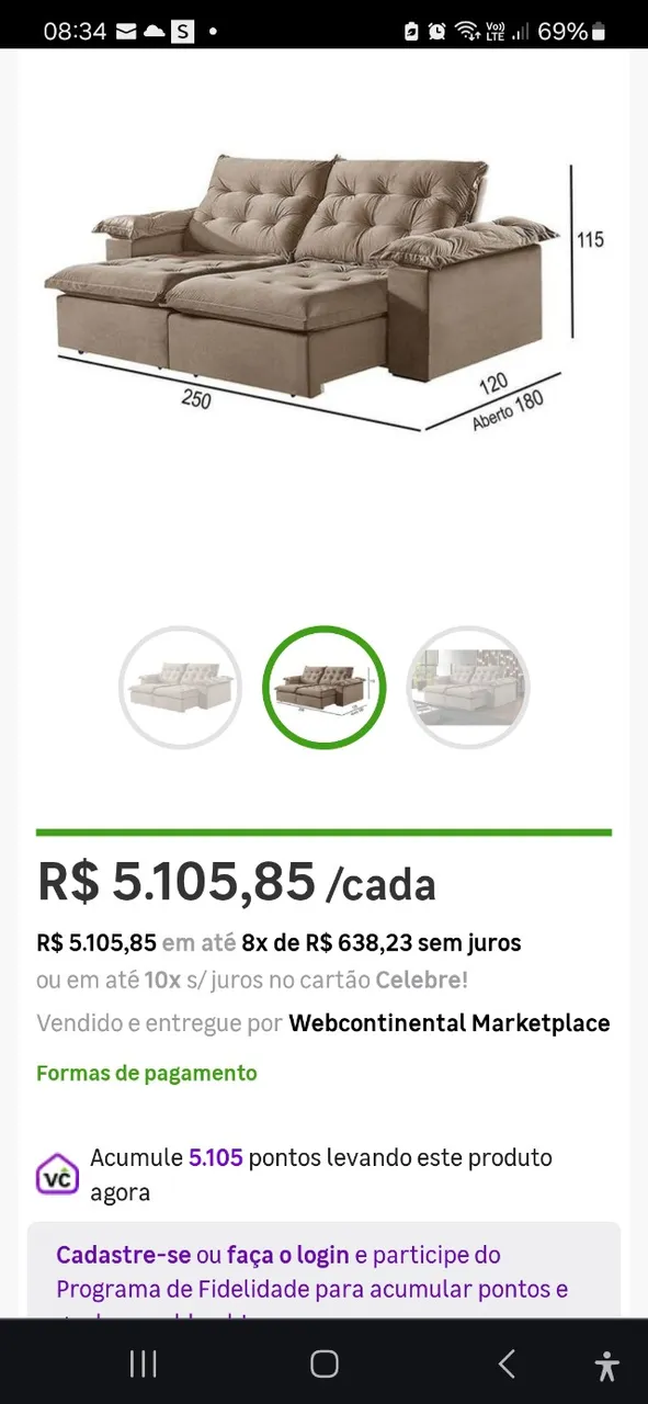 Sofá Cama 2 lugares bem espaçoso usado, com design moderno e confortável. Perfeito para quem busca praticidade e estilo. Aproveite essa oportunidade! O preço dele novo é mais de 5 mil conforme anúncio anexo, mais estou pedindo nele 700,00 foi comprado na lar shopping