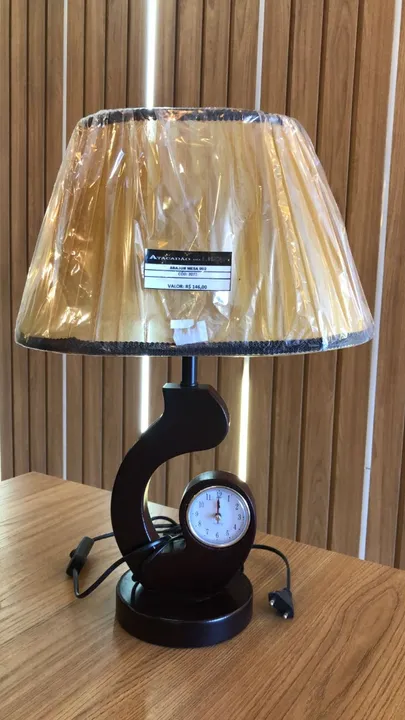 Abajur moderno com design elegante e funcional, perfeito para decorar sua casa. Possui um relógio embutido na base, adicionando praticidade e estilo ao ambiente. A lâmpada proporciona uma iluminação suave e aconchegante, ideal para criar uma atmosfera relaxante.