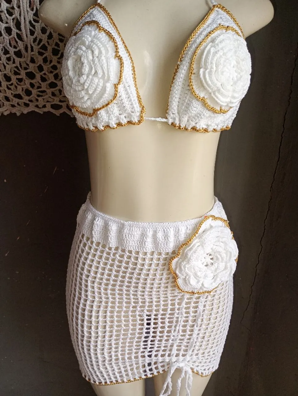 Deslumbre-se com este conjunto de crochê artesanal, perfeito para um visual elegante e único! Com detalhes delicados e um design charmoso, este conjunto é a escolha ideal para quem busca estilo e exclusividade.