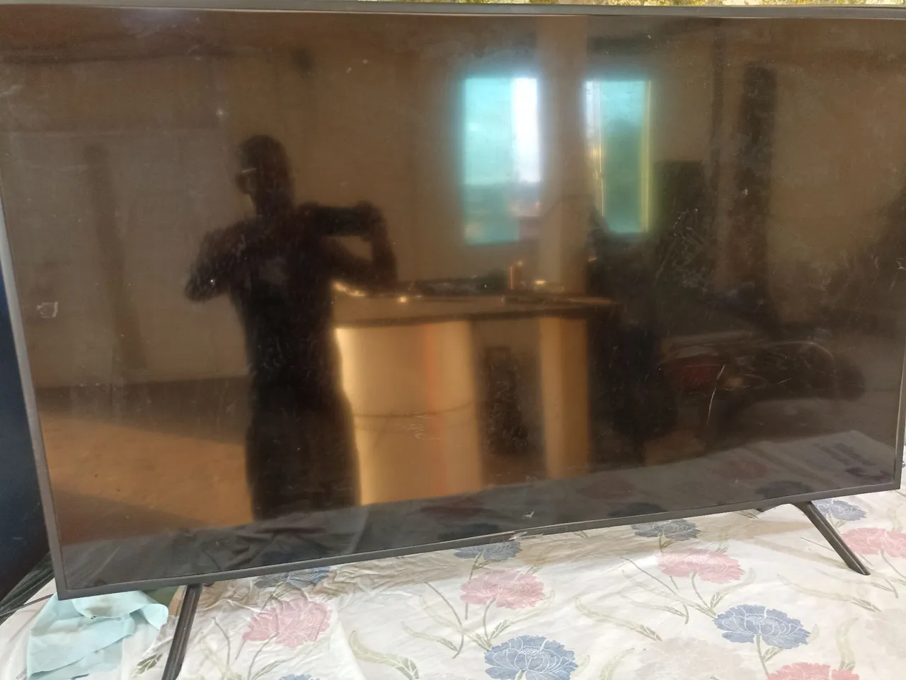 Televisão com tela ok , foi aberta para substituir os leds e a folha de ofuscação estava queimada e acrílico trincado, não tenho interesse em consertar, vendo para retirada de peças.