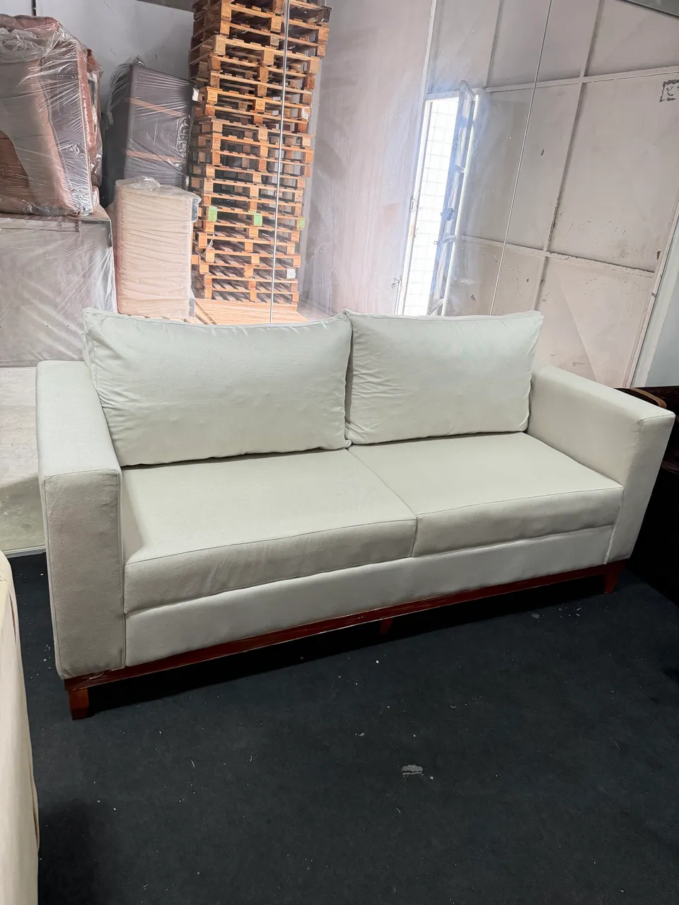 Sofá executivo com design elegante e base em madeira que agrega sofisticação e conforto ao seu ambiente.