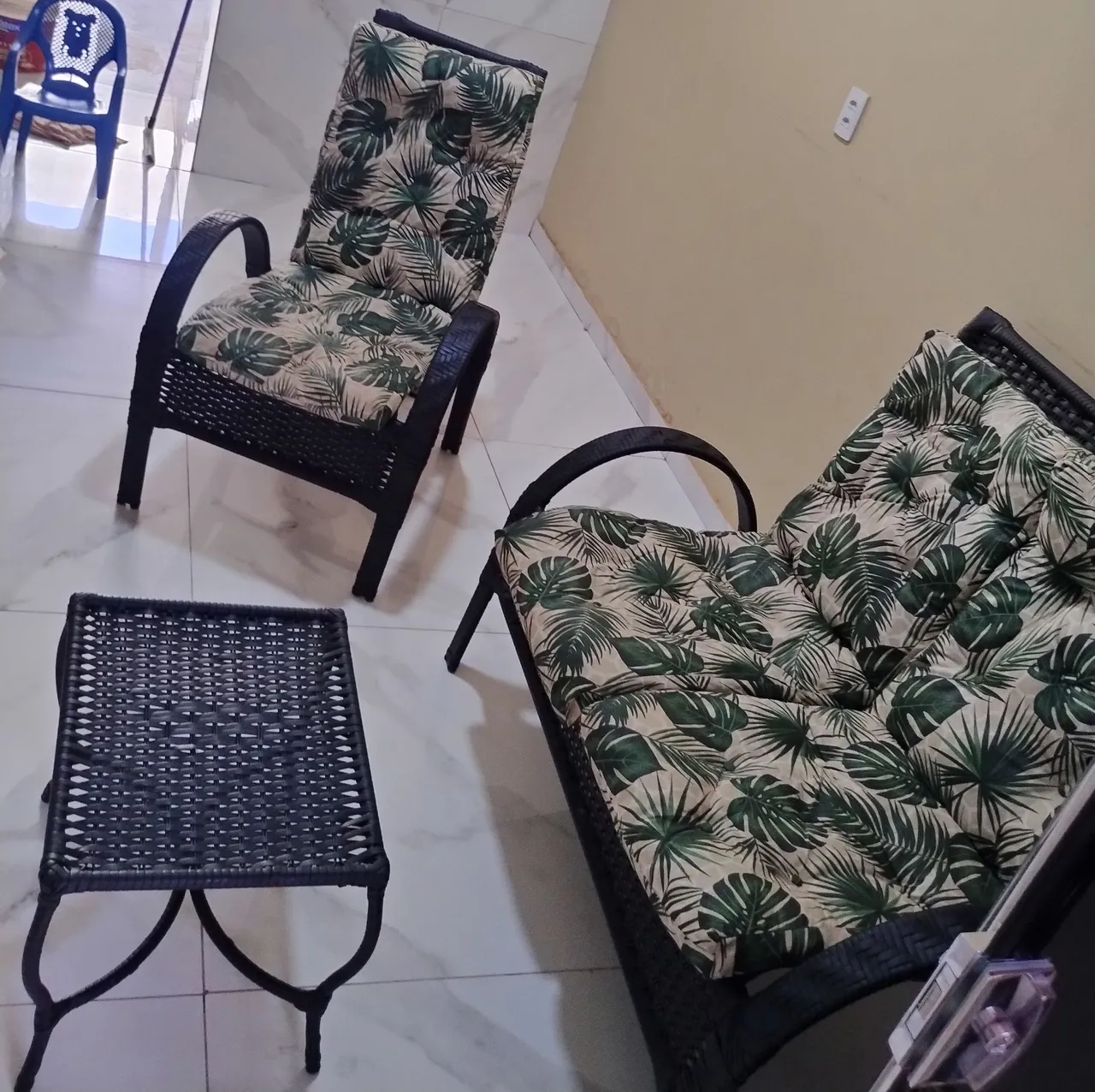 Desfrute do conforto e elegância com este conjunto de cadeiras e namoradeira! Perfeito para relaxar em seu espaço, com design moderno e almofadas aconchegantes. Transforme sua casa em um refúgio de tranquilidade.