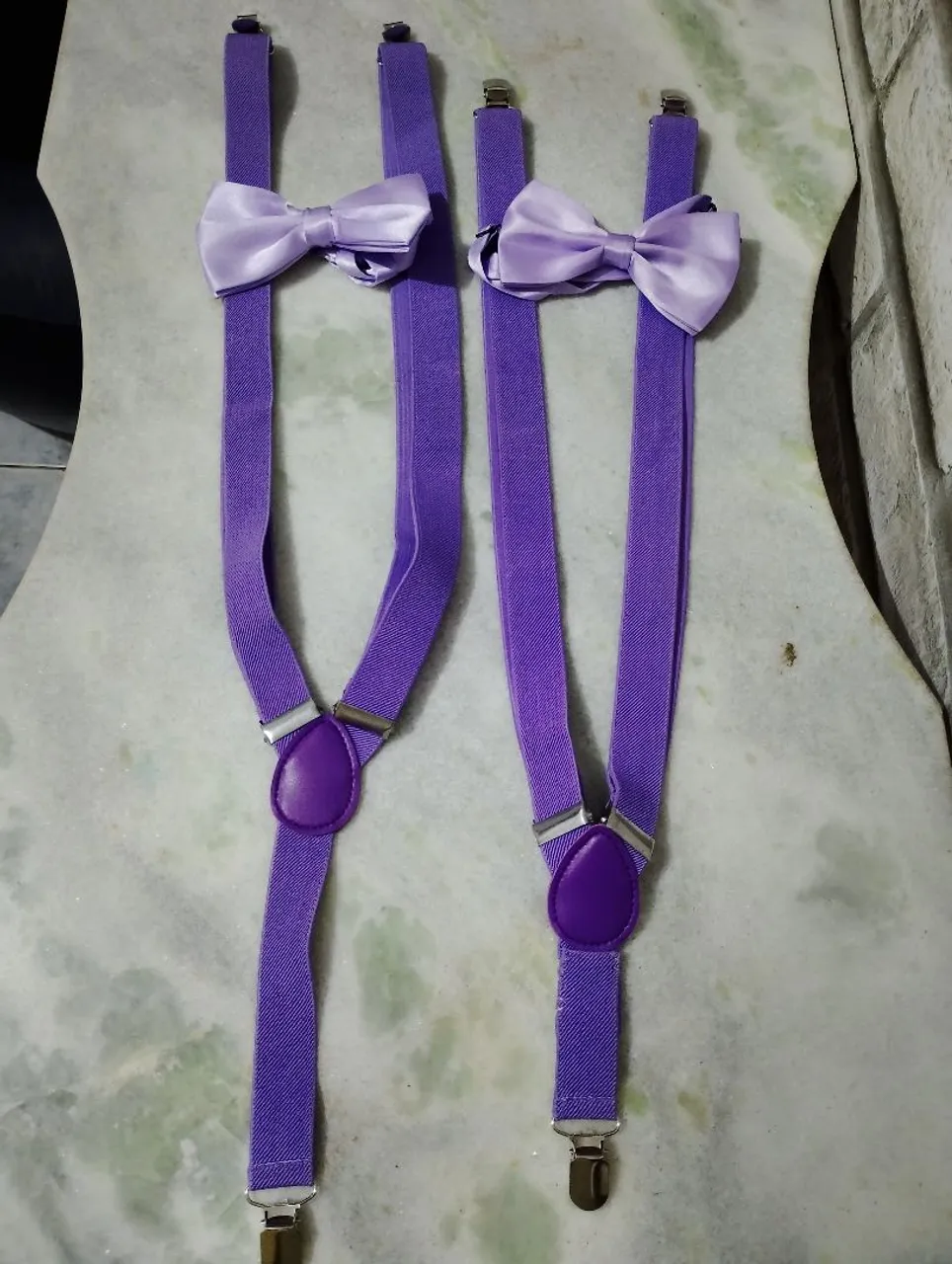 Lindos suspensórios infantis roxo com gravata borboleta, rosa e preto, ideal para compor looks charmosos e estilosos. Perfeito para festas, eventos especiais ou para dar um toque de elegância ao dia a dia do seu pequeno. Usado apenas 1 vez.