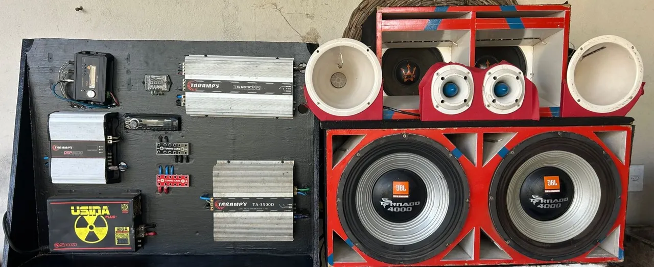 Potencialize a experiência sonora com este sistema de som completo! Equipado com alto-falantes JBL Tornado 4000, amplificadores Taramps e acessórios de alta qualidade, este conjunto oferece graves potentes e agudos nítidos. Ideal para quem busca um som automotivo de alta performance.