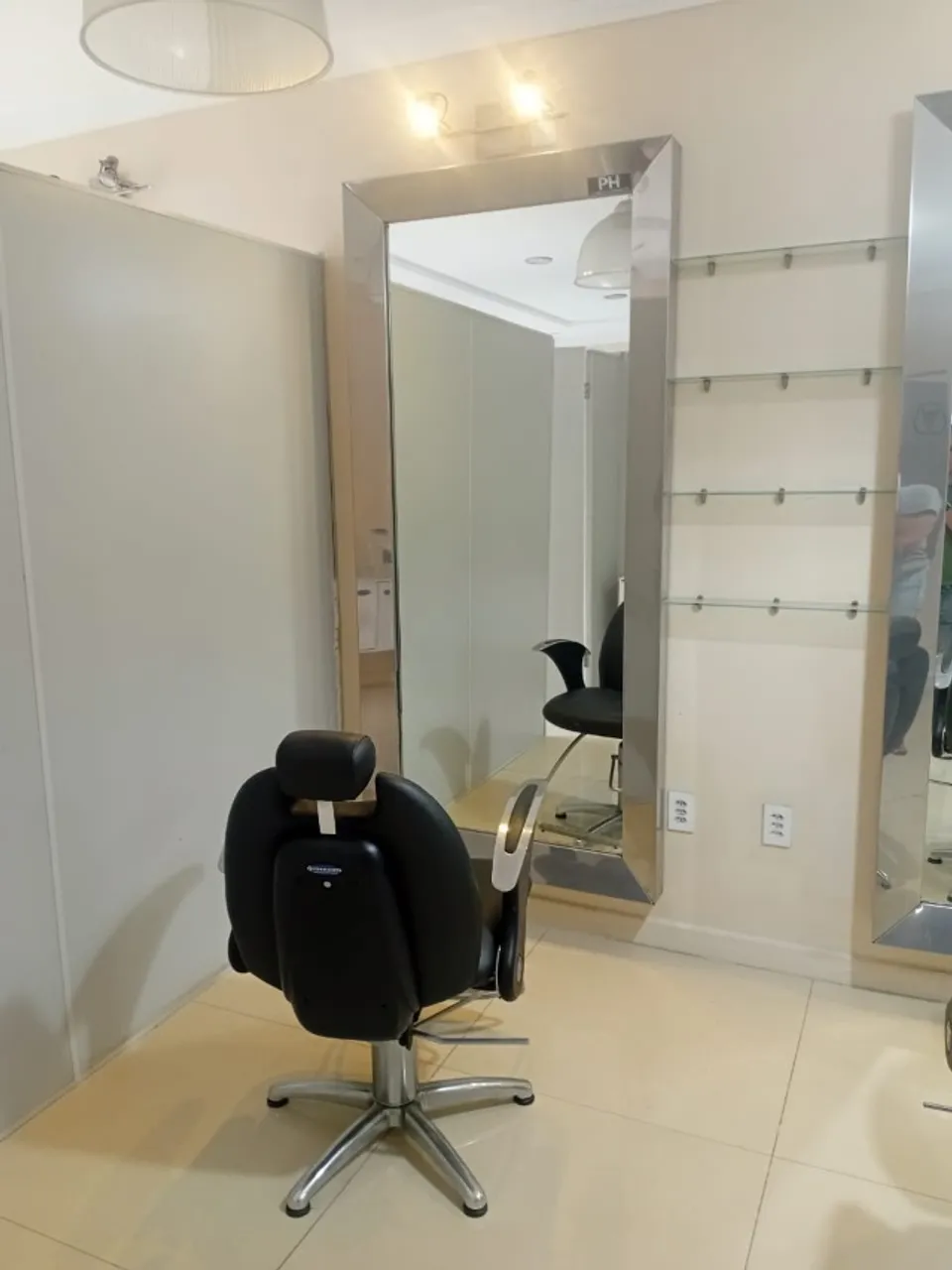 Perfeito para quem está montando ou renovando o salão. Espelho R$1500,00 Cadeiras ferrante R$1900,00 Carrinho auxiliar R$500,00
