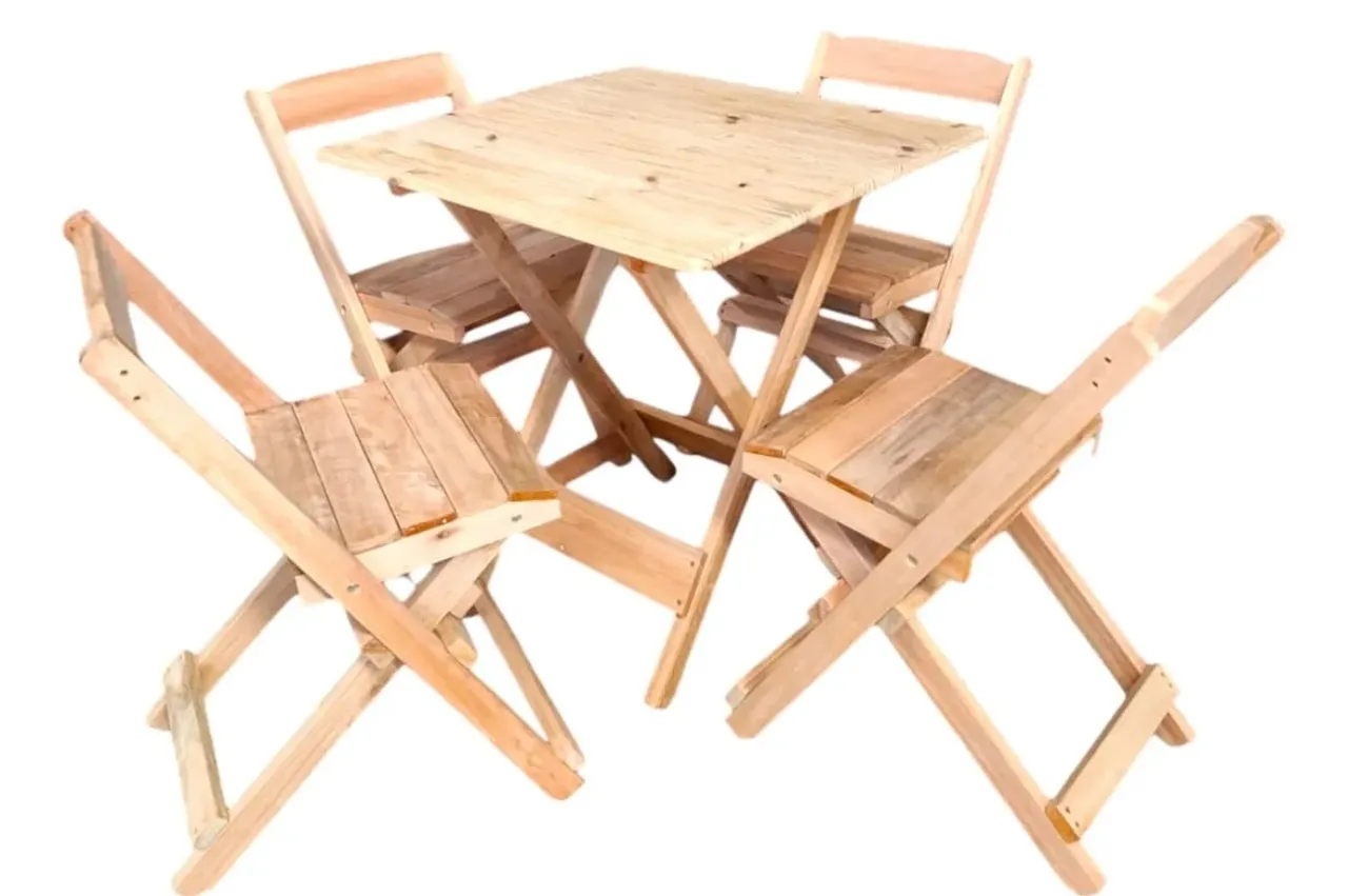 Conjunto de mesa e cadeiras perfeito para sua casa! Design rústico e funcional, ideal para diversos ambientes. Leve, fácil de montar e desmontar.