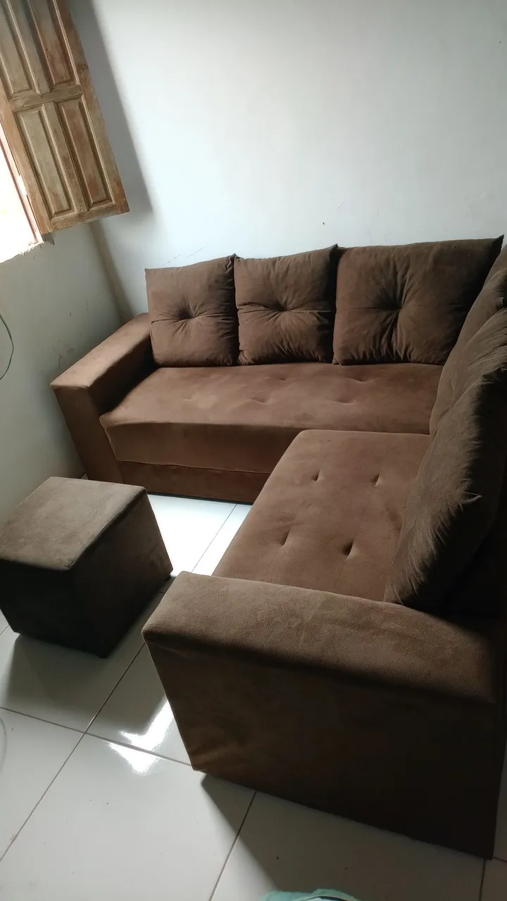 Aconchego e elegância para sua sala! Sofá de canto com design moderno e confortável, perfeito para relaxar e receber amigos. Acompanha puff, ideal para um descanso extra. Transforme seu espaço com este sofá novo e impecável!